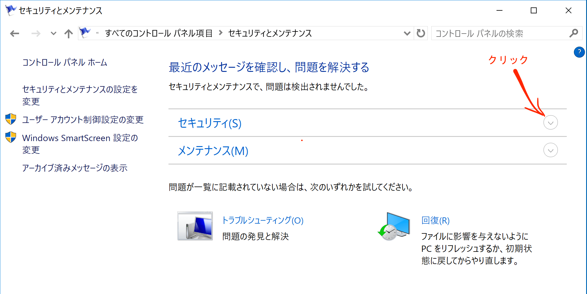 Windows 7, 8.1は同じ三角旗のアイコンを探してください。名称は「アクションセンター」だったはずです。