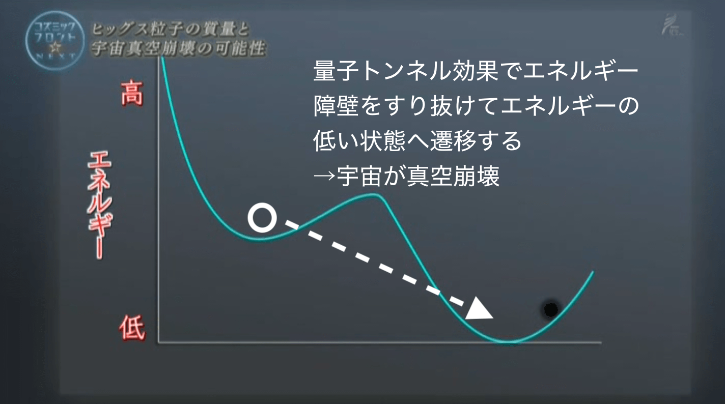 超対称性や重力を考慮すると真空崩壊せずに済むという見解もあるそうです。
